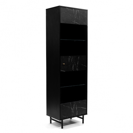 Elegante vetrina VEROLI 5 nera con frontale in marmo e LED – 90 cm – VR-05