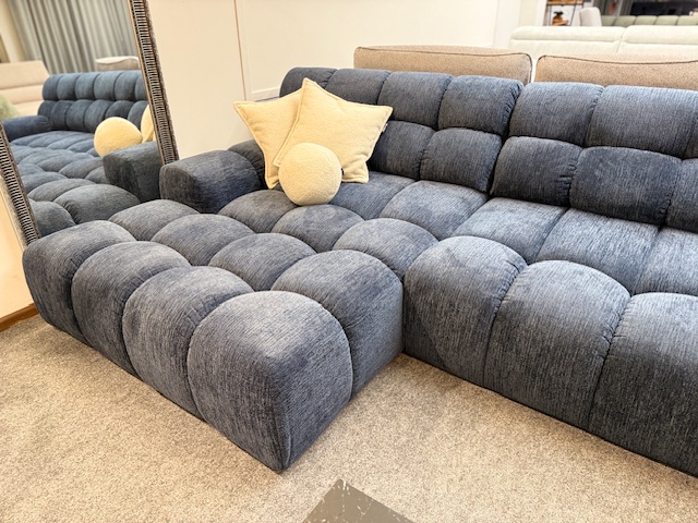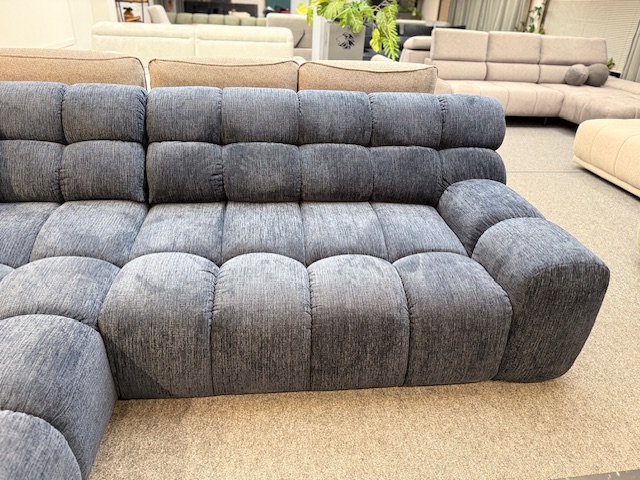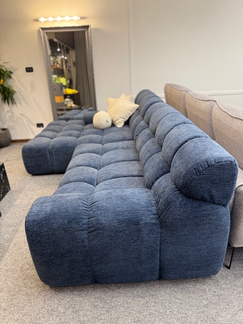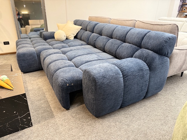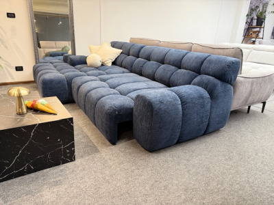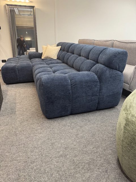 Il divano angolare Campile, ora disponibile subito nello showroom Vikado Arredamento, combina eleganza moderna e un comfort sorprendentemente morbido. Questa versione, con penisola sinistra e rivestimento in uno splendido blu navy, porta nel soggiorno un tocco di carattere e raffinatezza.