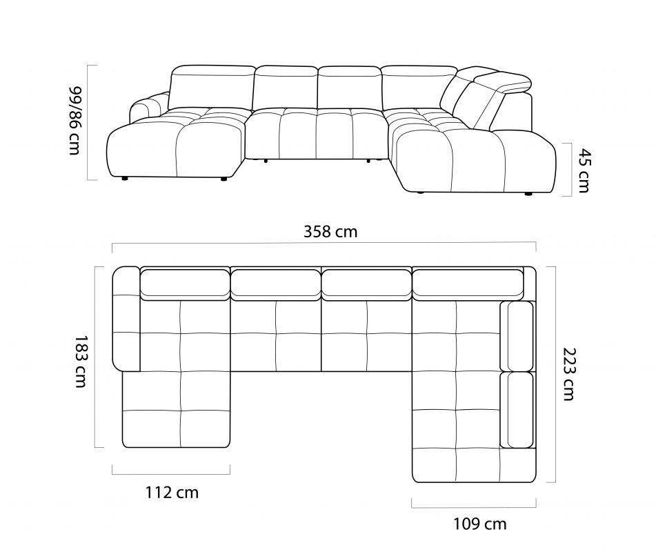 Divano angolare estendibile e contenitore in forma U – MATEO XL