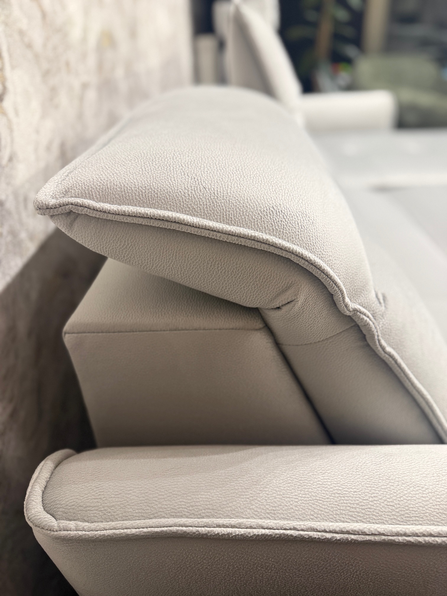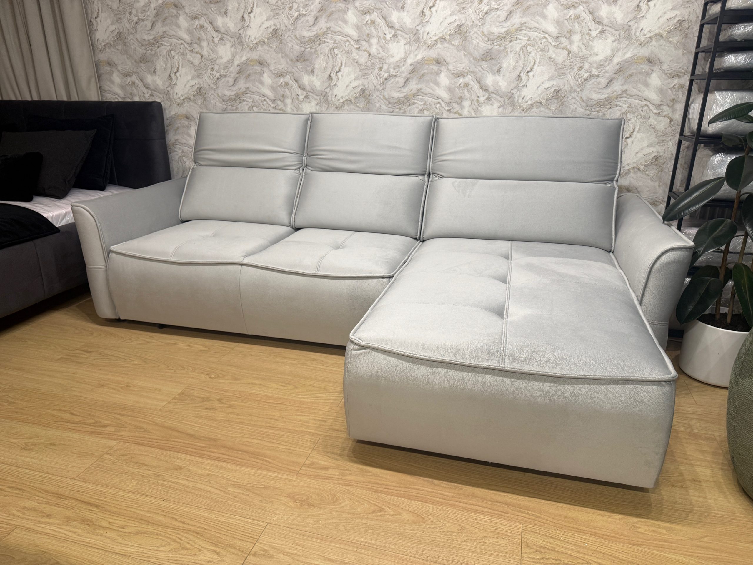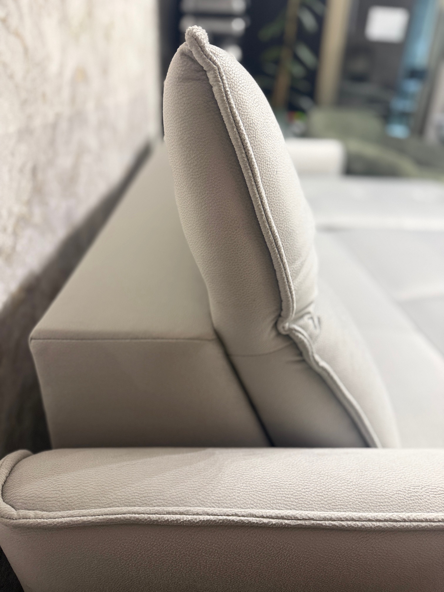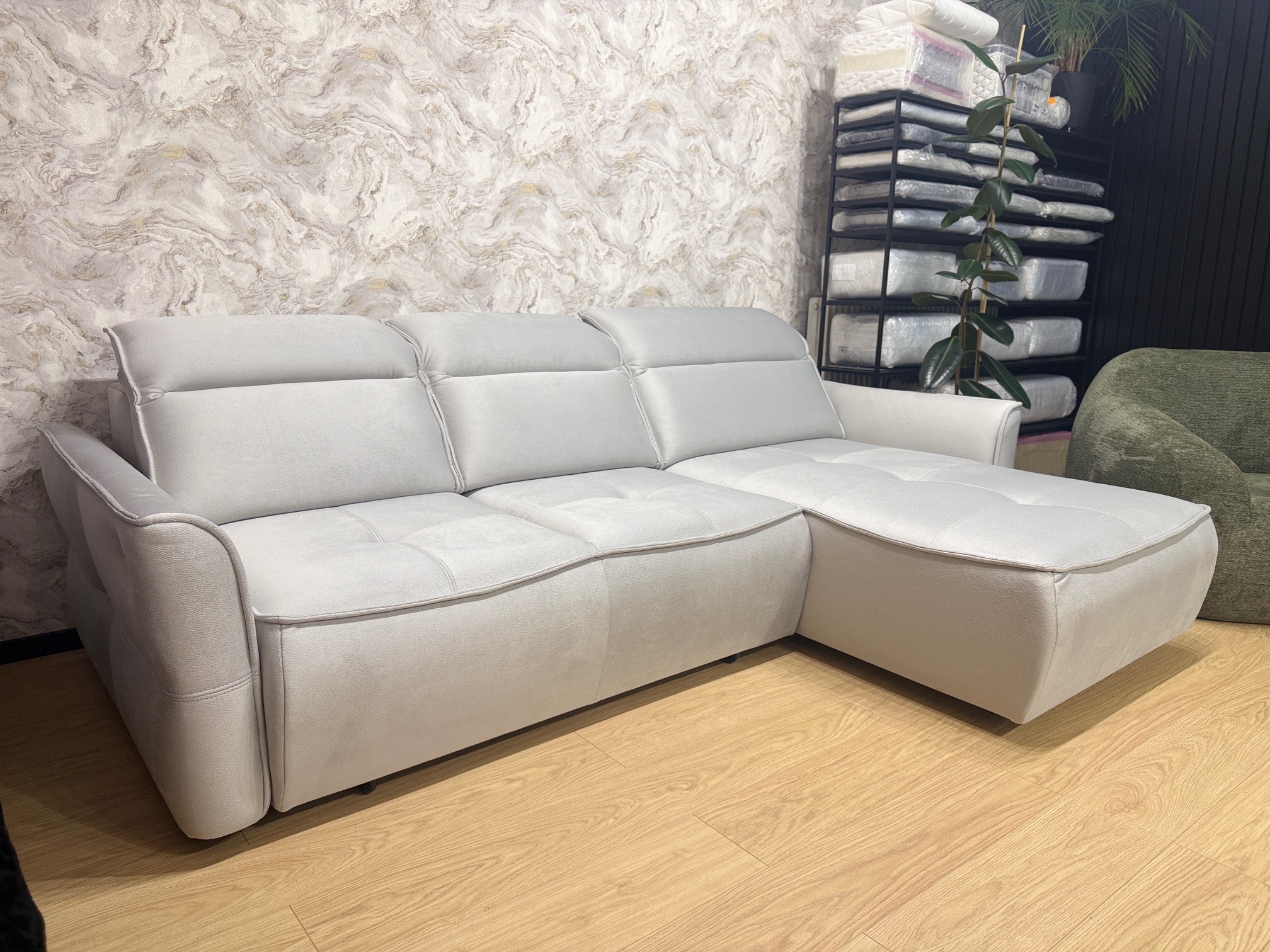 Murillo Mini nella versione destra, rivestito in tessuto Solar grigio chiaro, è un divano angolare moderno e funzionale, ideale per chi desidera comfort elevato, praticità e consegna immediata, il tutto a prezzo promozionale.