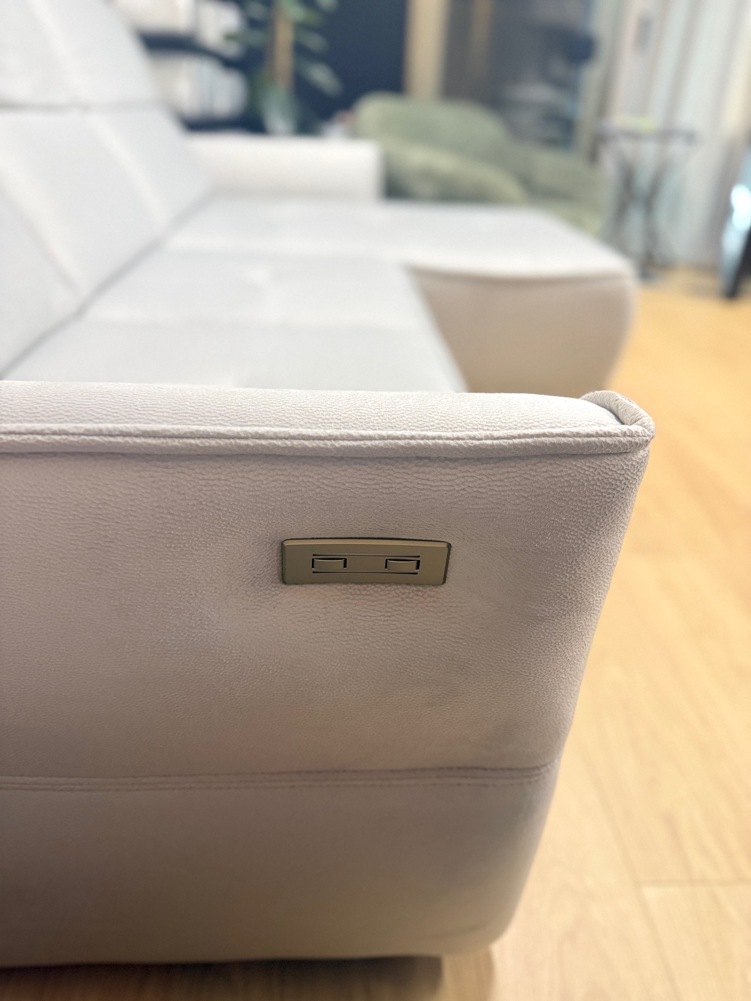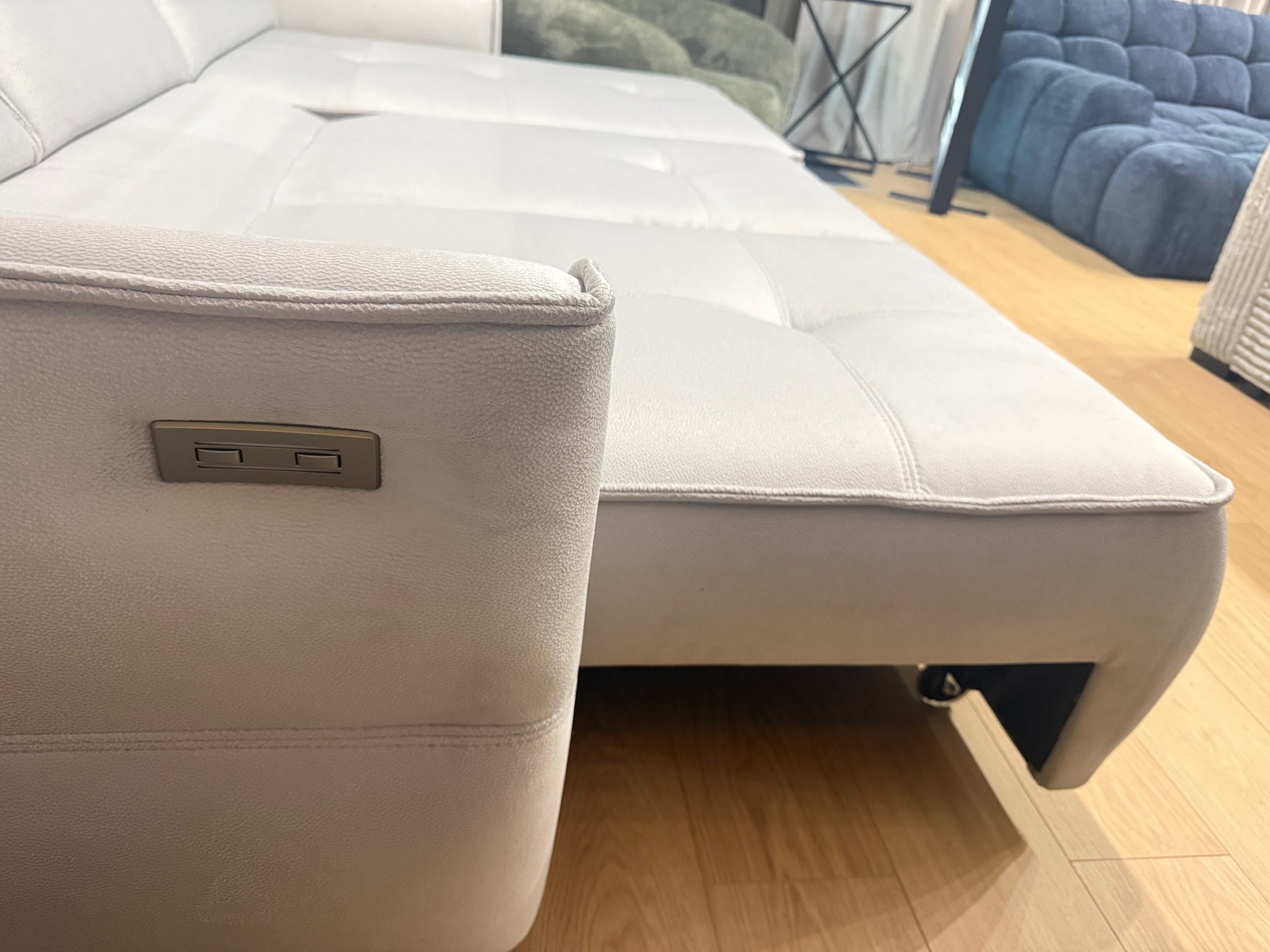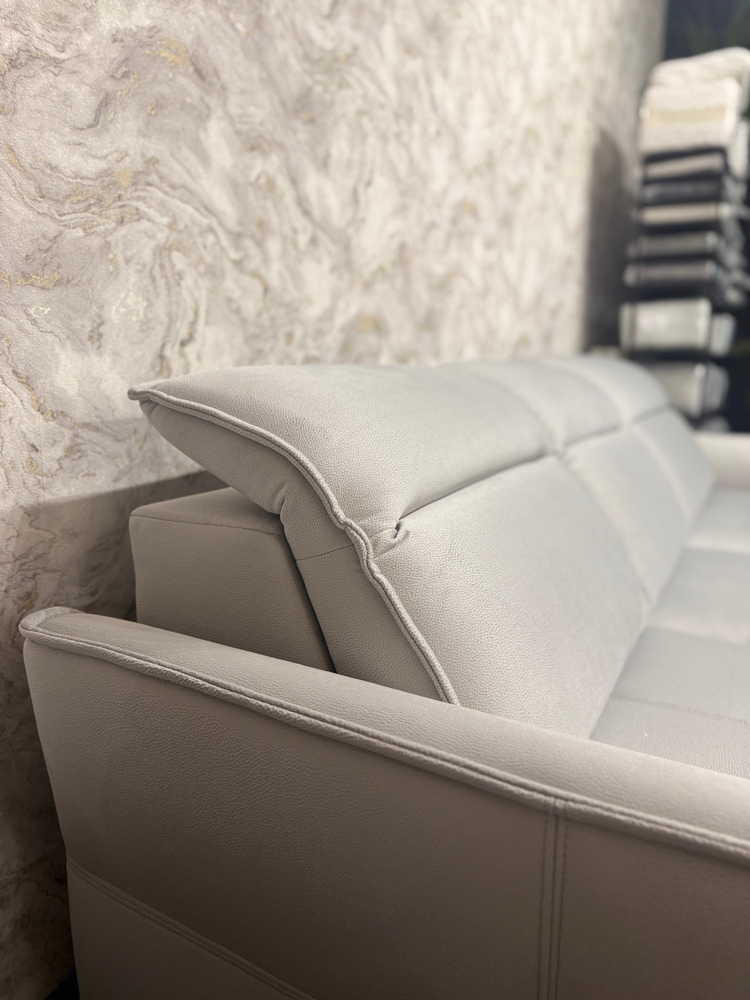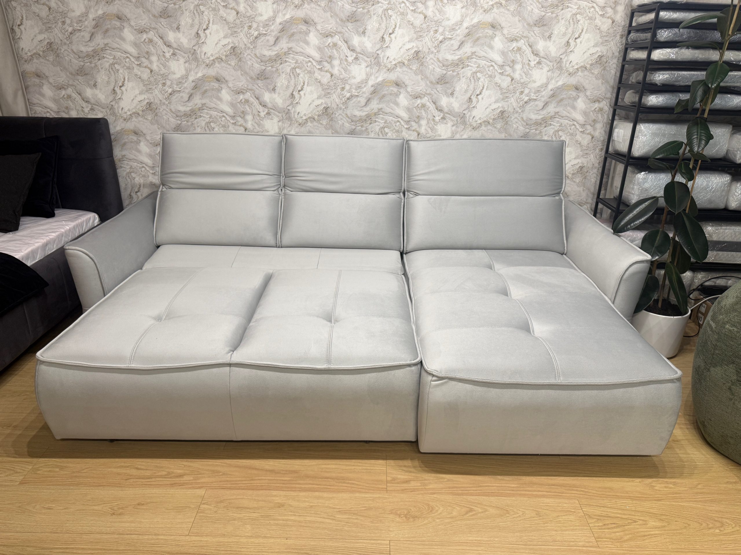 Murillo Mini nella versione destra, rivestito in tessuto Solar grigio chiaro, è un divano angolare moderno e funzionale, ideale per chi desidera comfort elevato, praticità e consegna immediata, il tutto a prezzo promozionale.