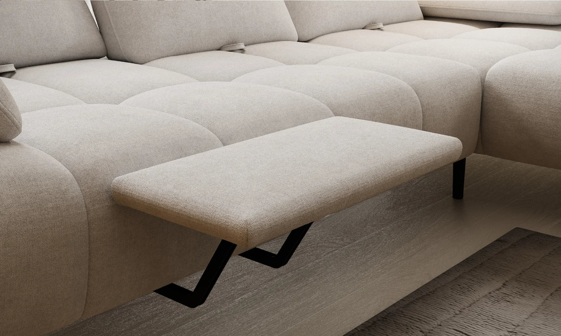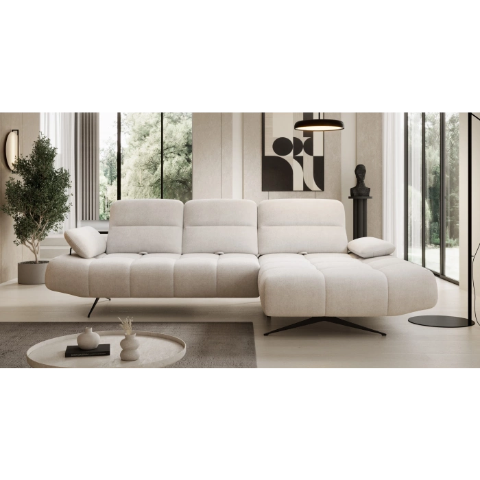 Il nuovo divano angolare Falcao unisce eleganza e funzionalità in un unico modello pensato per il massimo comfort. Con una larghezza di 284 cm, questo divano offre spazio generoso per tutta la famiglia, senza rinunciare alla leggerezza delle sue linee moderne.