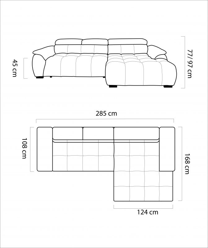 La versione S con chaise longue senza schienale offre unโestetica piรน leggera e aperta, perfetta per ambienti moderni e open space.