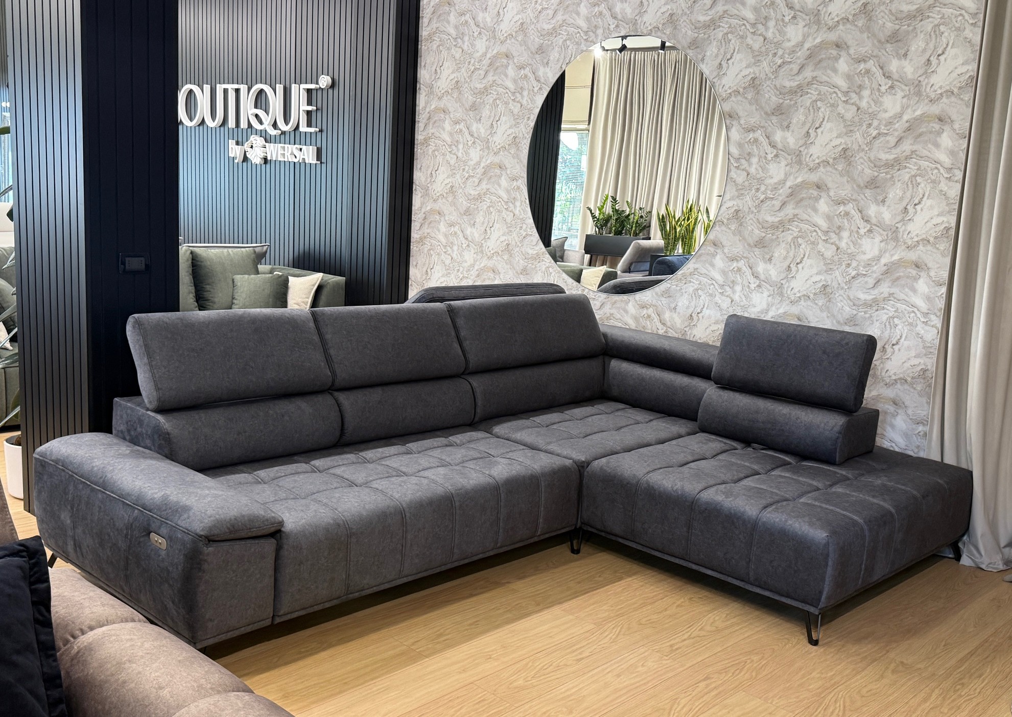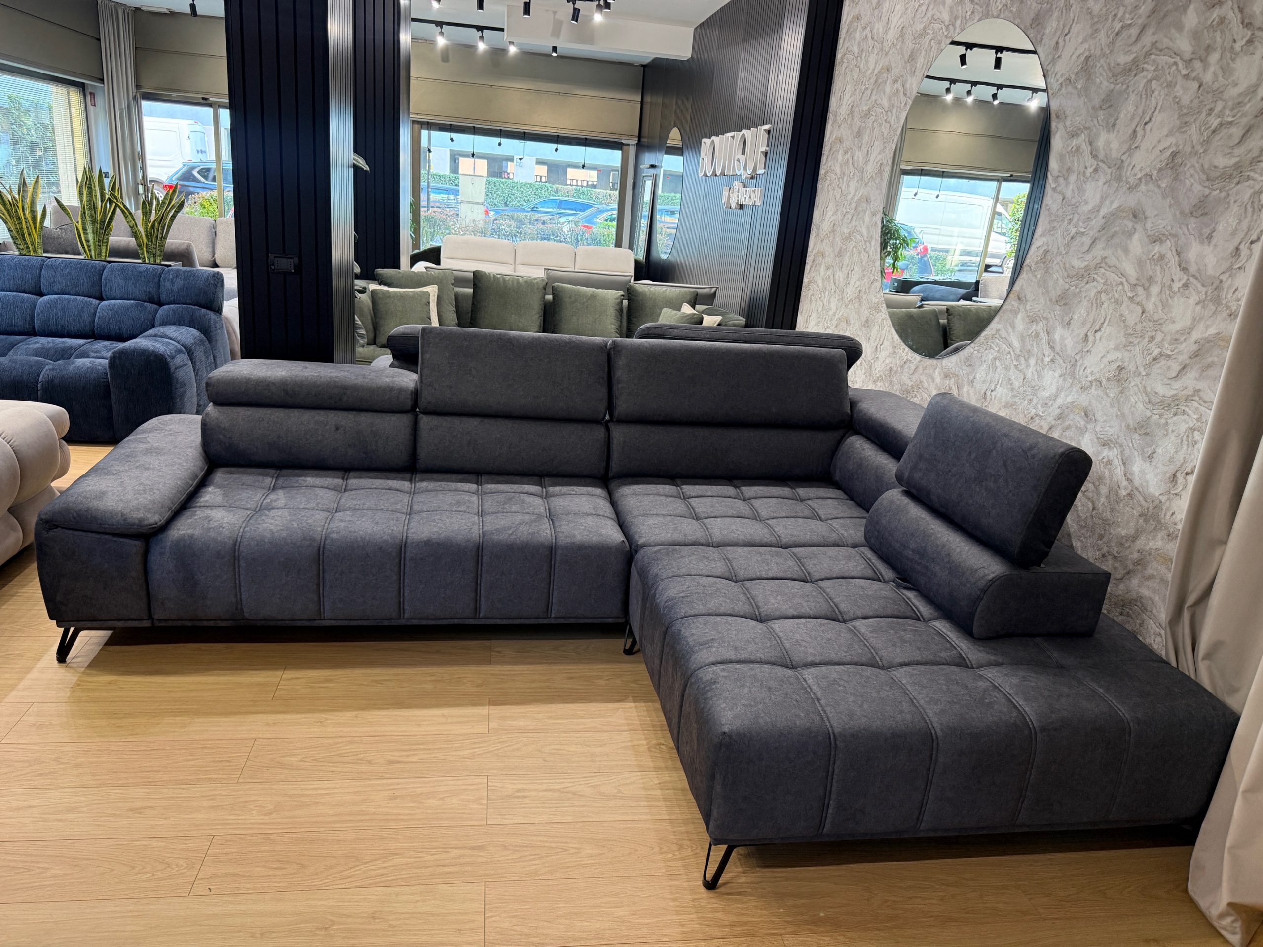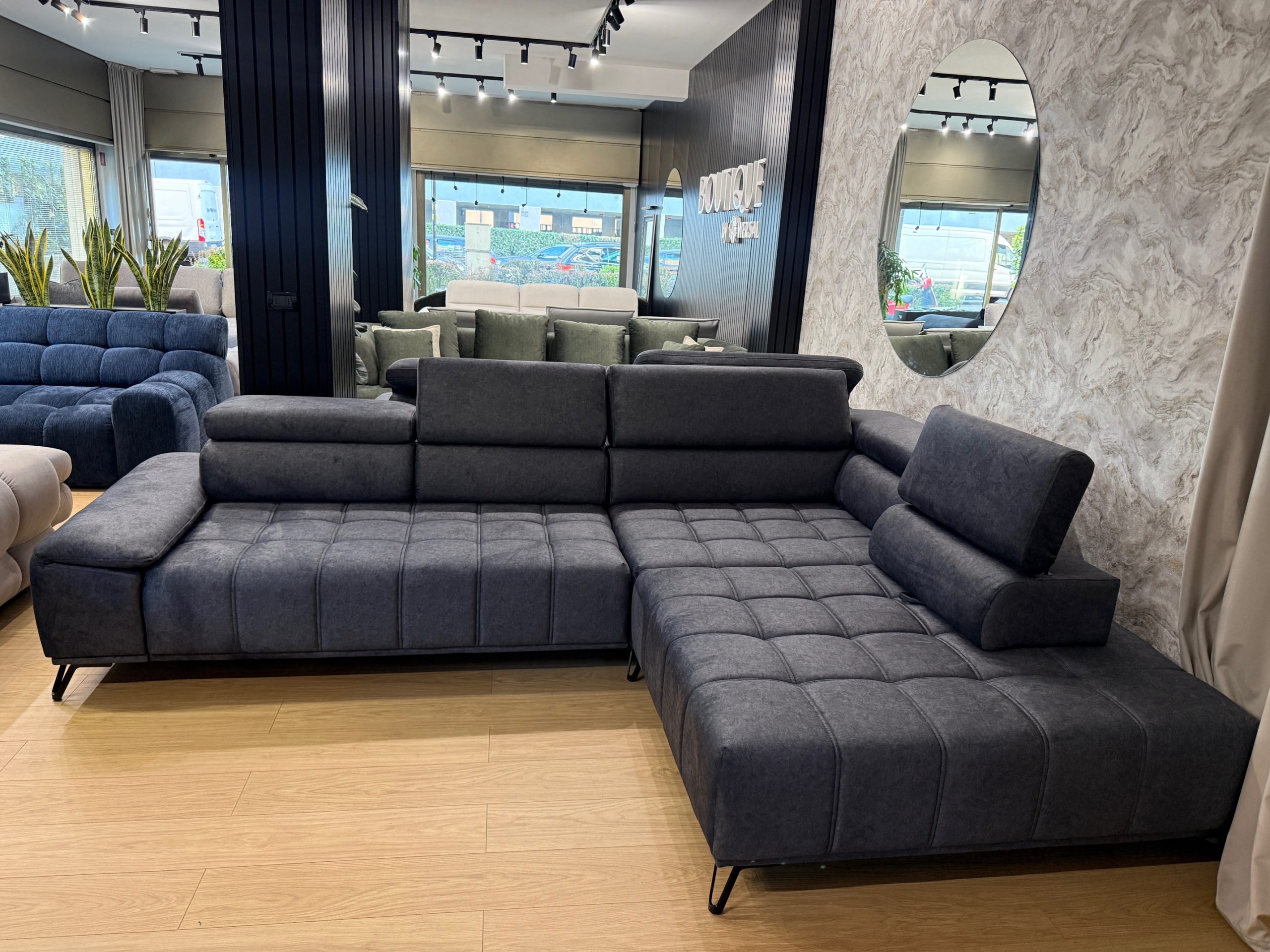 Il divano angolare Palladio L in colore grigio acciaio con penisola sulla destra rappresenta la perfetta sintesi tra design contemporaneo, comfort avanzato e funzionalità intelligente. Ideale per chi desidera arredare il proprio soggiorno con uno stile moderno ed elegante, questo modello si distingue per le sue linee snelle e raffinate, perfettamente in linea con le ultime tendenze dell’interior design.
