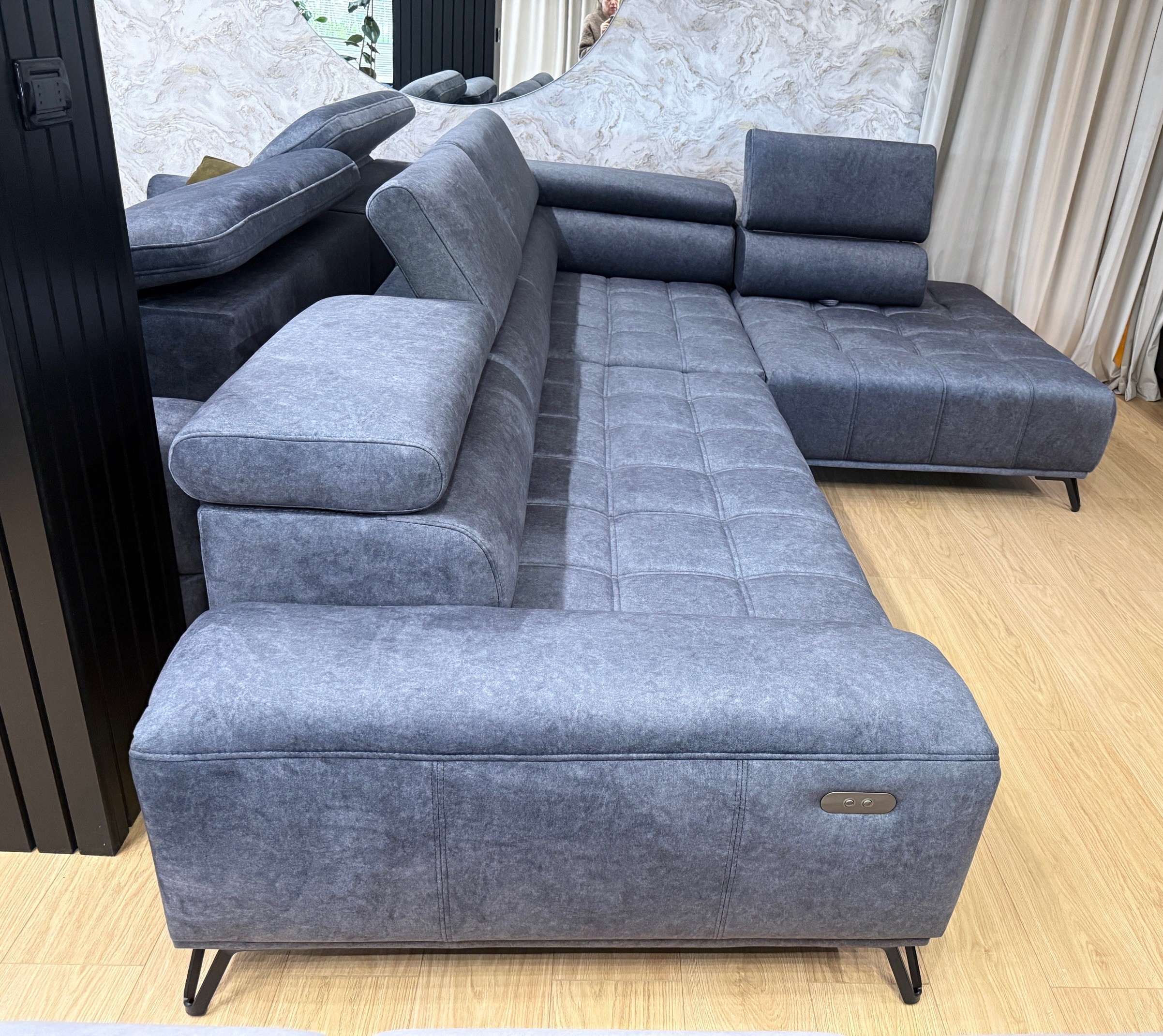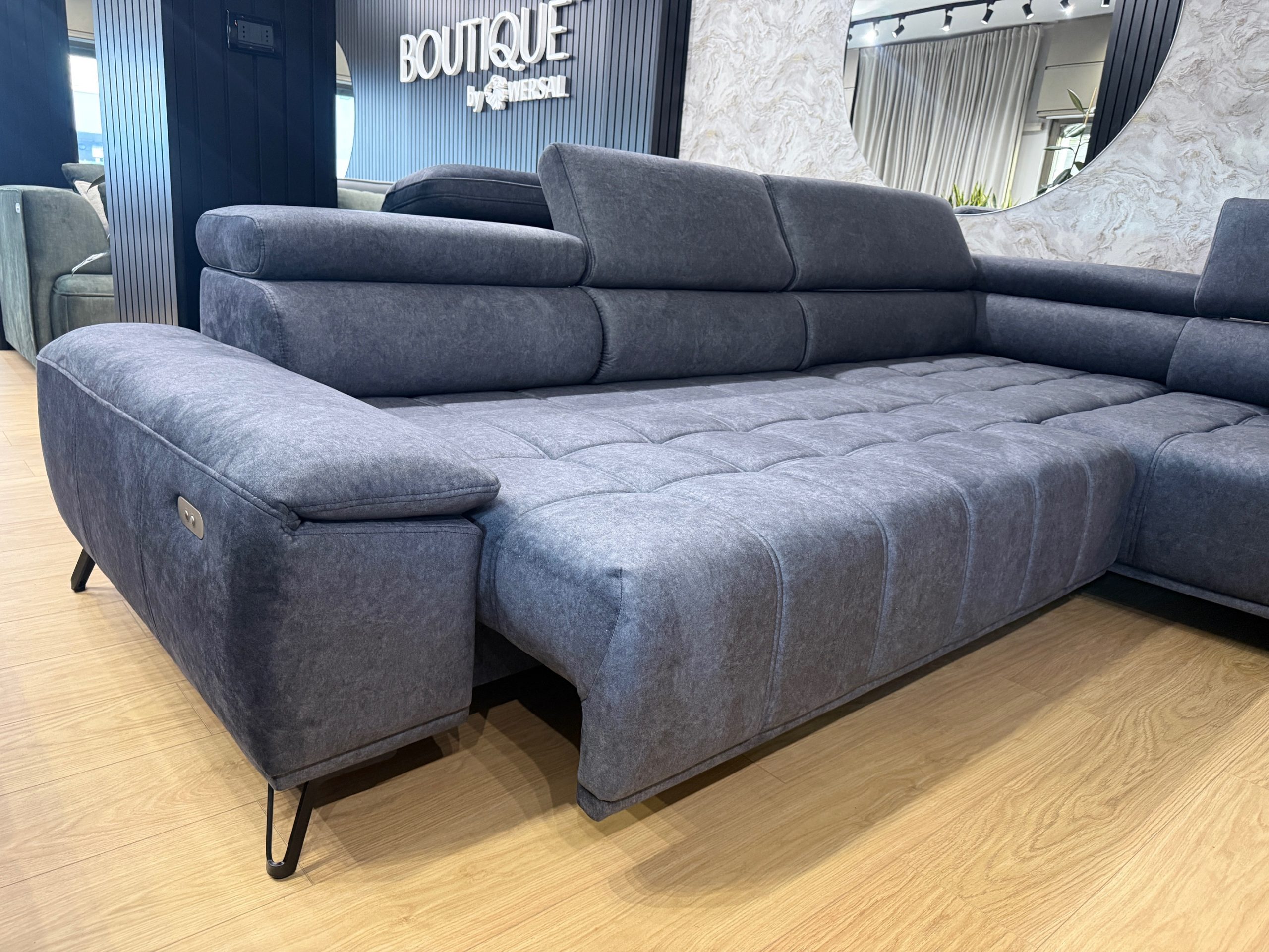 Il Palladio L è progettato per offrire il massimo comfort grazie alla seduta regolabile elettricamente, che consente di adattare la profondità del sedile alle proprie esigenze, creando uno spazio ideale sia per il relax quotidiano che per momenti conviviali. I poggiatesta regolabili garantiscono un sostegno ergonomico ottimale, migliorando ulteriormente l’esperienza di utilizzo.