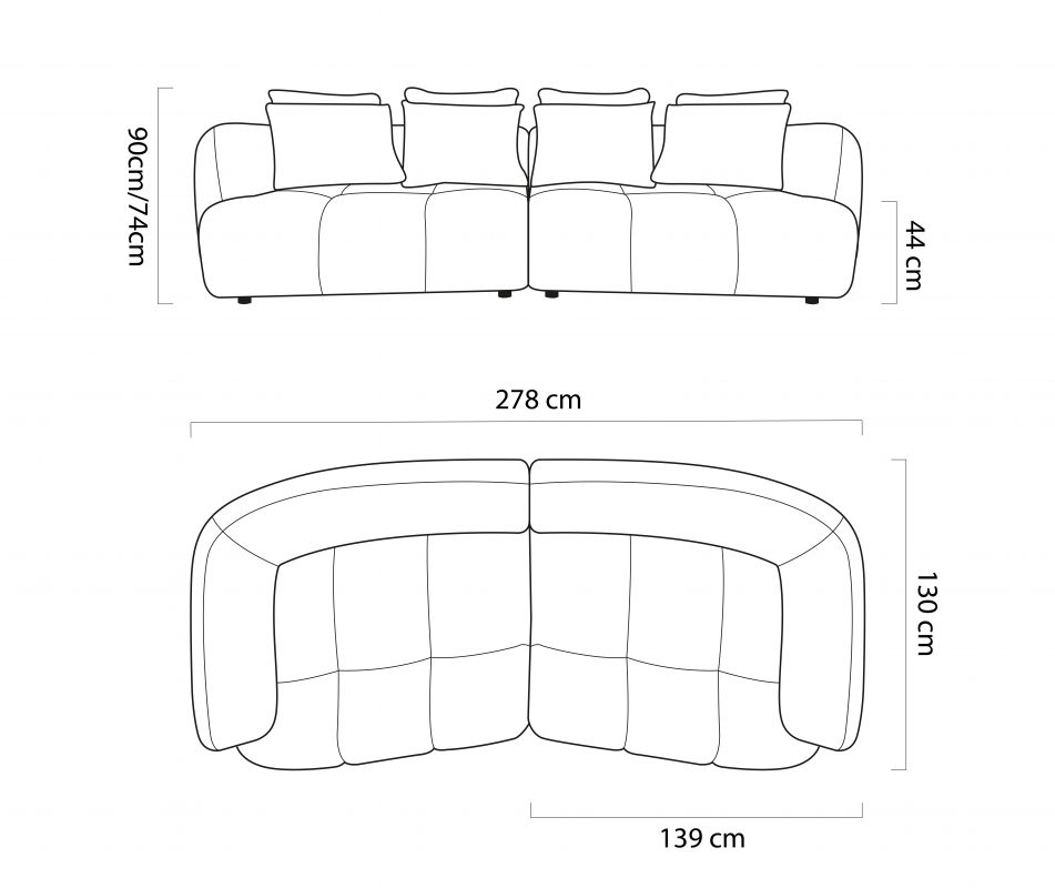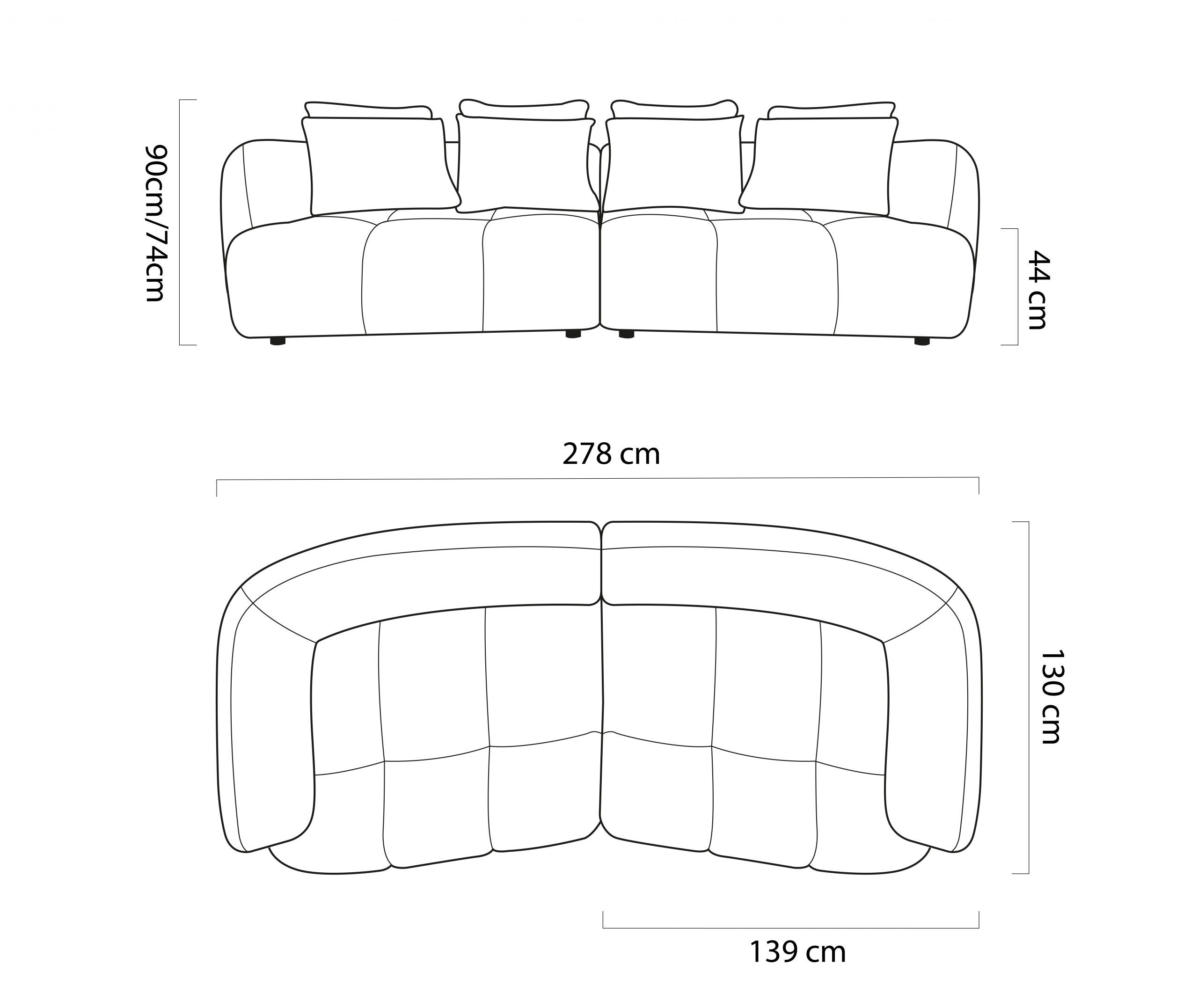 Con le sue dimensioni generose (larghezza 278 cm, profonditร  130 cm), questo divano lineare crea uno spazio accogliente e rilassante, ideale per chi ama vivere il soggiorno come un luogo di vero benessere.