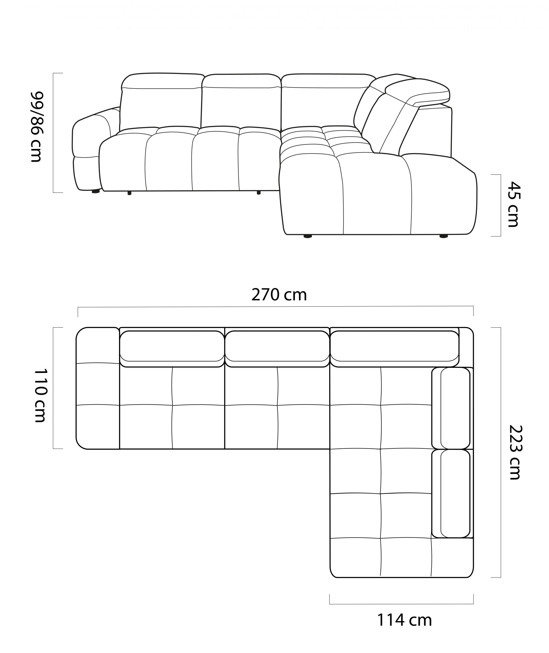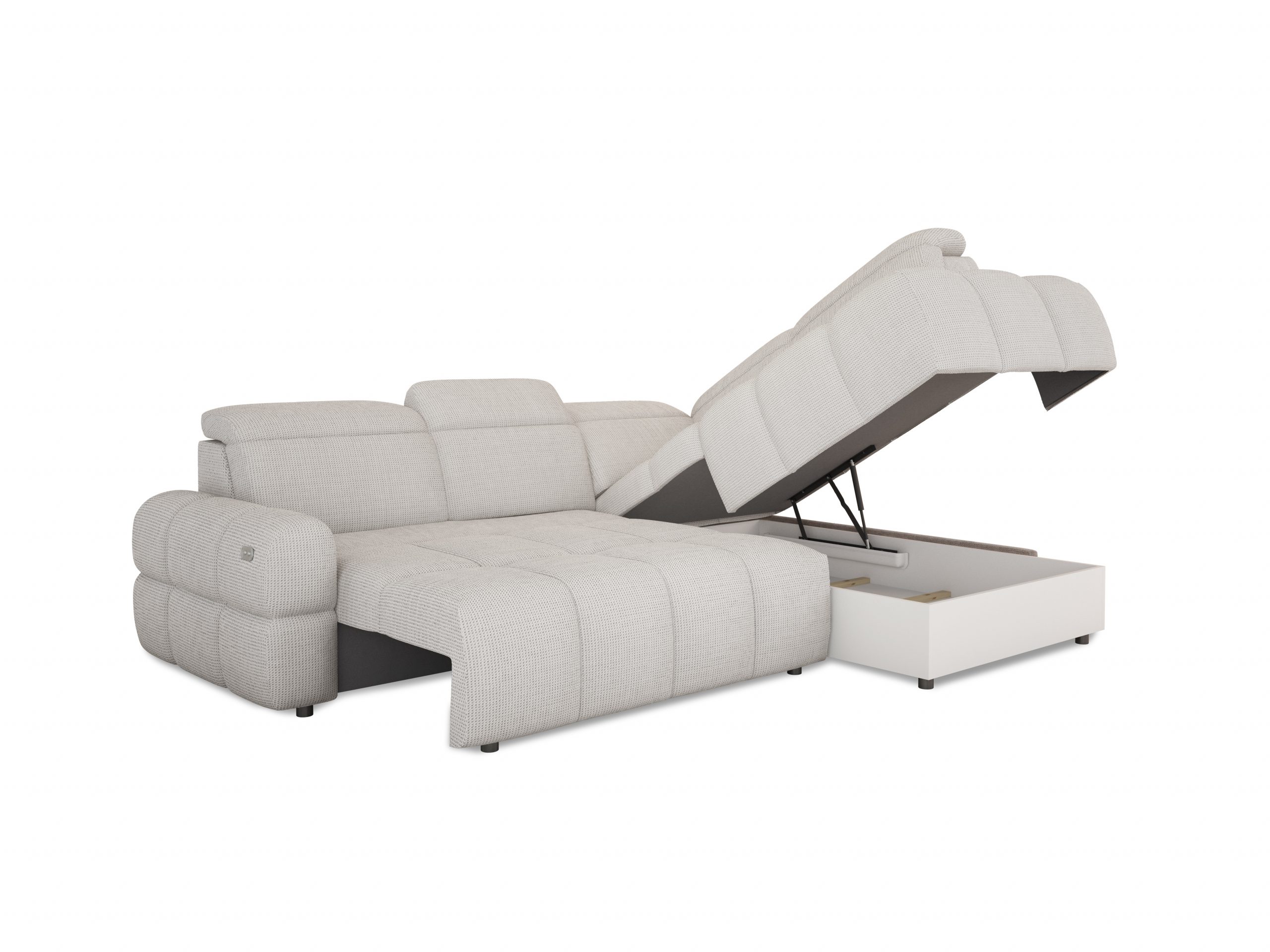 Il divano angolare Mateo Lย offre una funzione relax con maxi estensione, ideale per trasformare il soggiorno in un’accogliente zona notte. Grazie alla regolazione del poggiatesta, potrai adattarlo per un supporto ottimale della testa e del collo, mentre il contenitore nascosto aggiunge una funzionalitร extra per riporre cuscini, coperte o altri oggetti. Perfetto per chi desidera sfruttare al massimo ogni angolo del proprio salotto.
