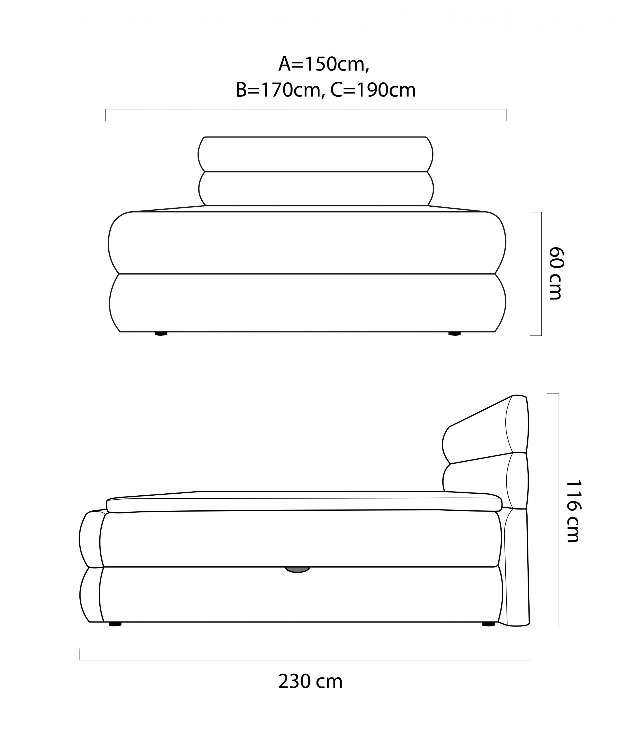 Questo modello si distingue per il suo design morbido e arrotondato, capace di creare immediatamente unโatmosfera rilassante e armoniosa. Le linee fluide donano leggerezza visiva e rendono il letto ideale per interni moderni, ma anche per ambienti piรน caldi e sofisticati.